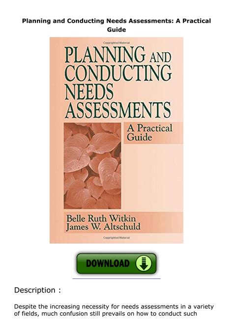 Download Planning and Conducting Needs Assessments A Practical Guide Kindle Editon By Click Button. Planning and Conducting Needs Assessments A Practical Guide it’s easy to recommend a new book category such as Novel, journal, comic, magazin, ect. You see it and you just know that the designer is also an author and understands the challenges involved with having a good book. You can easy klick for detailing book and you can read it online, even you can download it