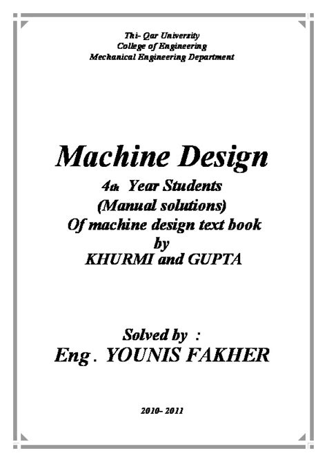Read Online Machine Design By Rs Khurmi Solution Manual PDF